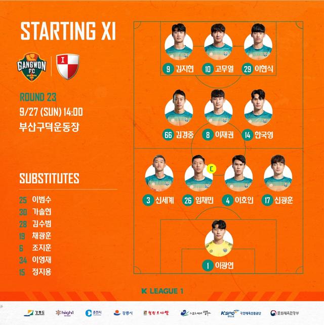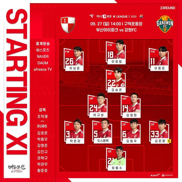 韩国当地时间9月27日下午,2020赛季韩国足球K1联赛保级组第一轮展开争夺。由于水原三星蓝翼前一天的获胜给釜山和江原都带来了危机,因此本场比赛两队都希望在主场赢下对手。釜山的大将李庭协复出出任单箭头,而外援罗穆罗因为伤病原因未进大名单,他的位置由金承俊替代。江原方面除了有伤在身的赵在玩、红牌停赛的金荣彬外,包括金址炫、高武烈、韩国荣在内的全主力悉数出战。对于防守不力的江原来说,每一场比赛都是对他们的严峻考验。
