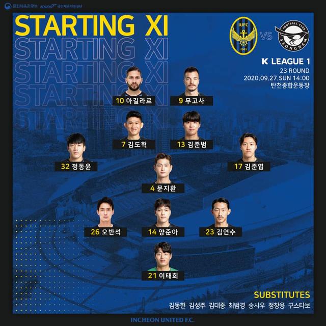 韩国当地时间9月27日下午,2020赛季韩国足球K1联赛保级组第一轮展开争夺。城南主场和仁川的比赛是一场价值6分的战役,由于周中雪藏了七名主力,因此城南此战派出了全主力登场,并且摆出了352的战术,试图要在主场赢下对手。而随着水原昨日赢下“国家德比”,仁川的压力一下子大了起来,此役他们也派出了352的阵型,穆戈萨重返首发阵容和阿吉拉尔搭档,也是全主力出战城南。这场比赛双方的态度都非常认真,也让比赛好看起来。