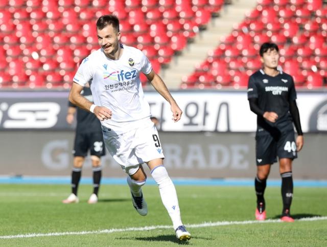 但仅仅2分钟,仁川门将直接后场起球,穆戈萨用身体扛住城南后卫后将球拨给中场金度爀,在无人防守的情况下,金度爀直接起脚打门,皮球划出一道弧线飞入球网,0-3!仁川锁定了胜局。