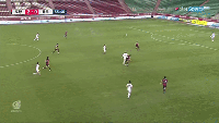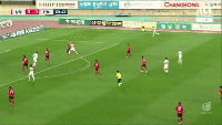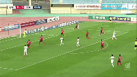 进球之后的江原越来越猛,江原前场快发任意球,李炫植将球传给无人看防的高武烈,高武烈并没有反应到,江原错过了进球的机会。