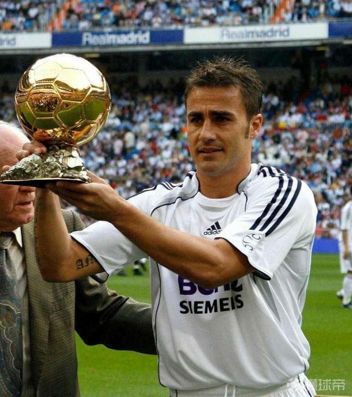 足坛老照片,皇马时期的卡纳瓦罗,手捧金球。