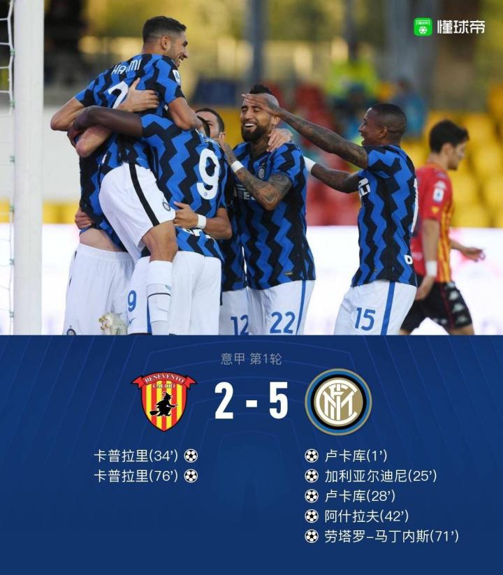 剑南春丨意甲战报:国际米兰客场5-2贝内文托,卢卡库双响
