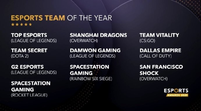 今天Esports Awards官方宣布了年度最佳电竞战队的入围名单: