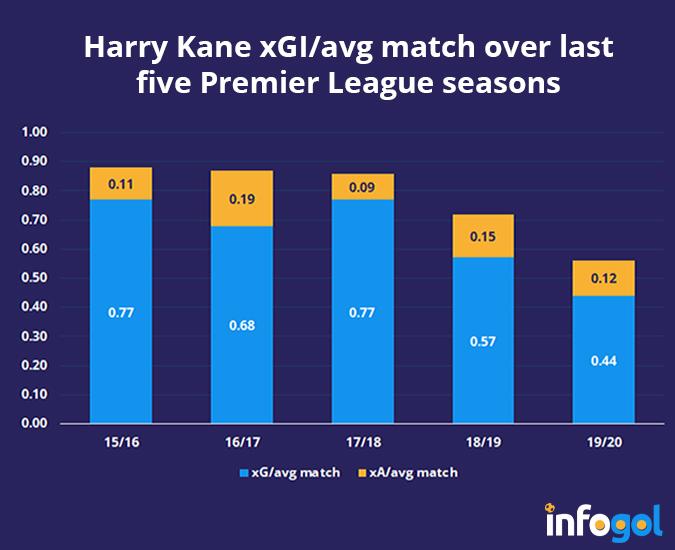 凯恩在过去的5个赛季场均xG