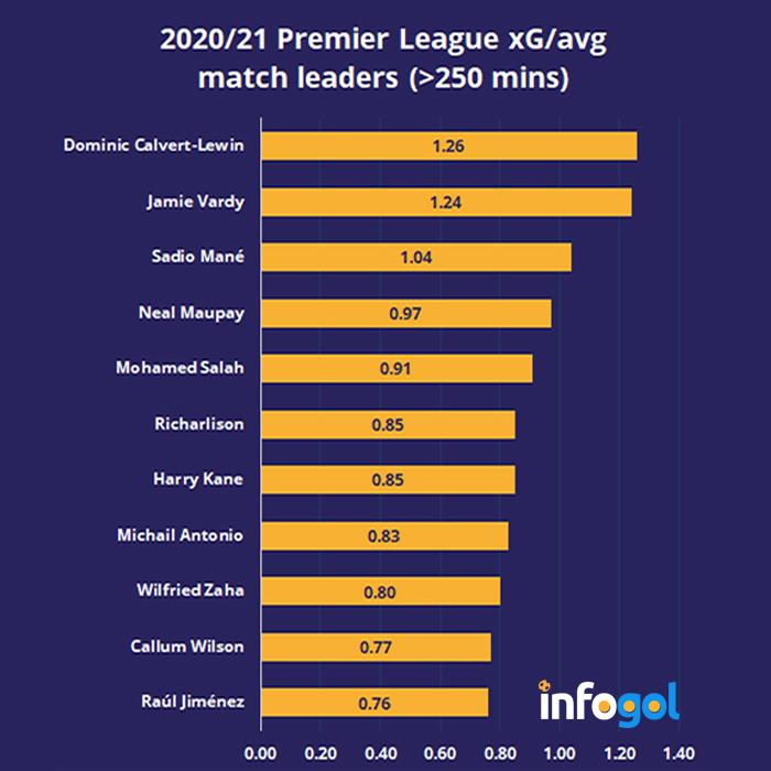 特别是得益于哈梅斯-罗德里格斯的输送,卡尔沃特-勒温表现出色,他进了5球(3.65 xG)。