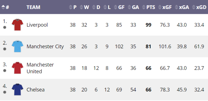 19/20英超xG表