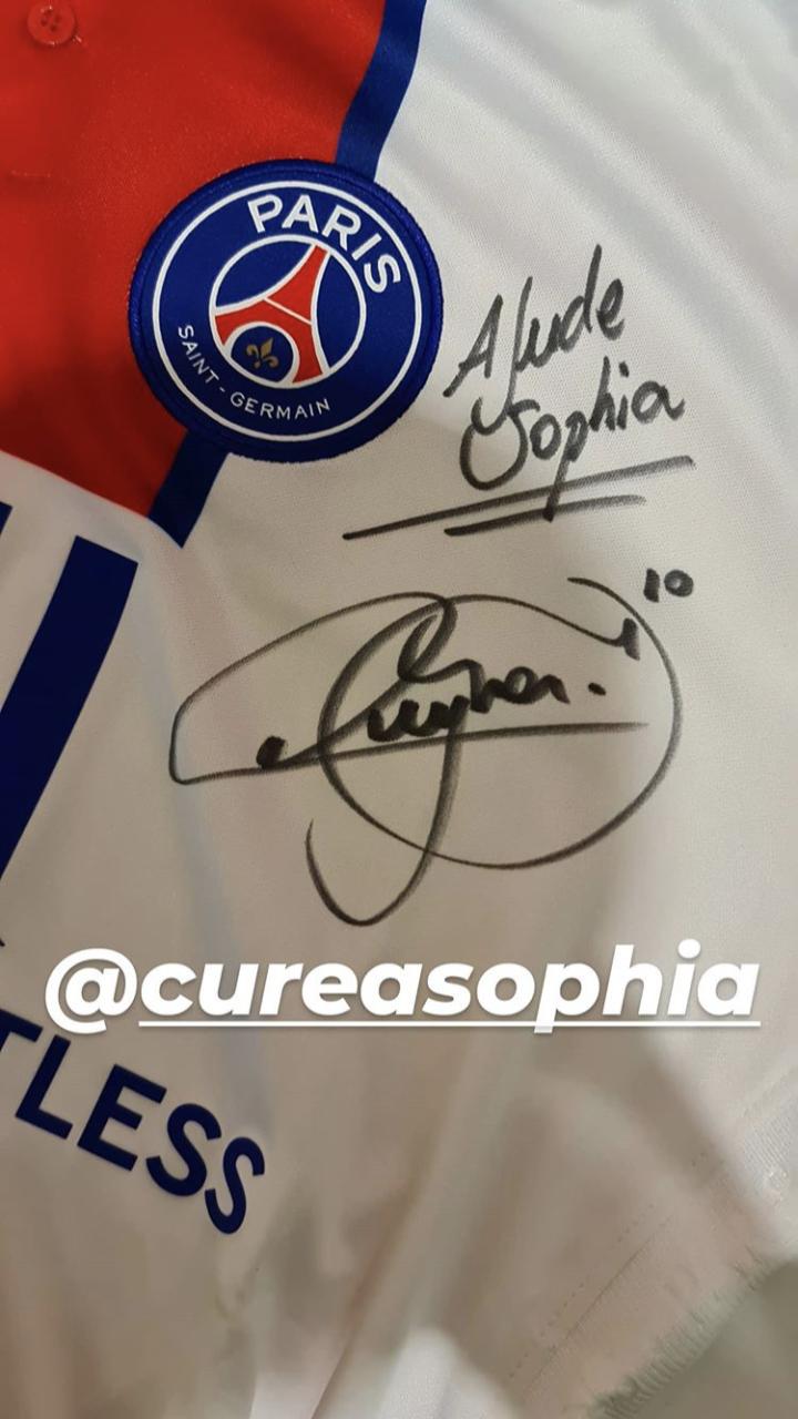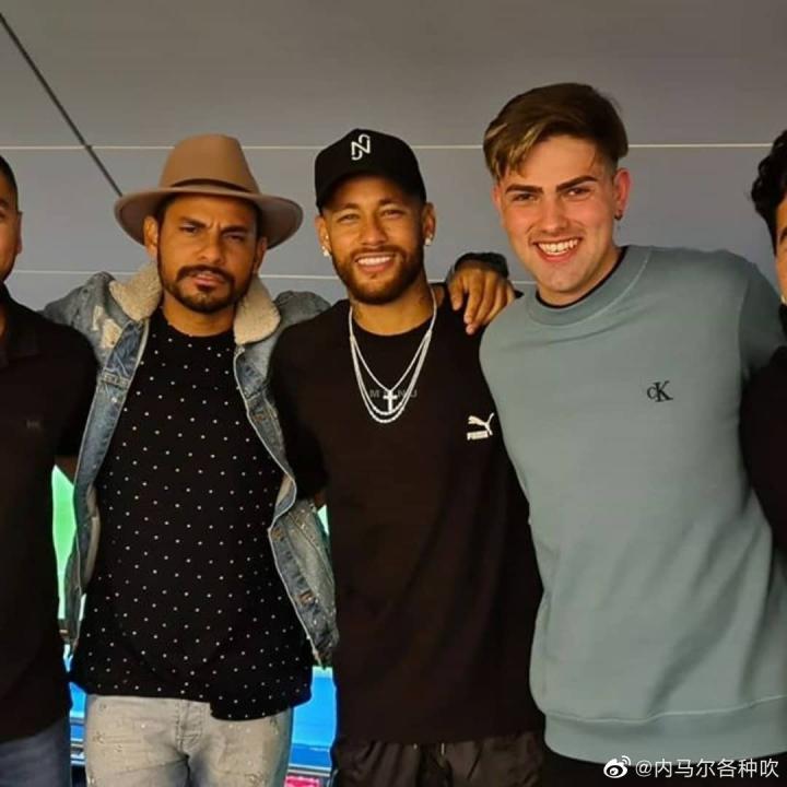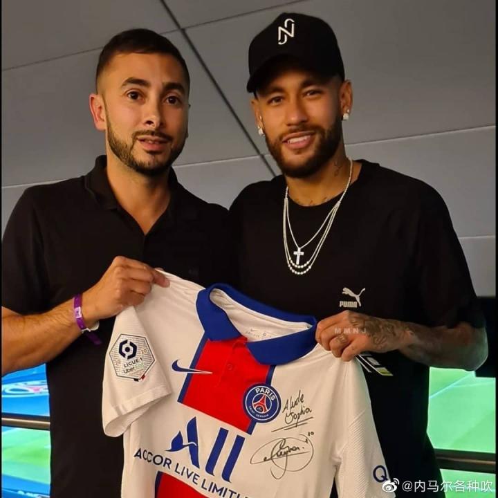 内马尔赛后与球迷合影,球衣签名送给患者