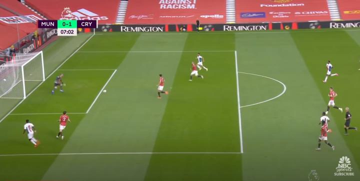 众所周知,曼联的攻击手们有着速度快、单兵作战及小团队突击能力强的特点。由于边翼卫不需要像四后卫体系中的边后卫那样在防守中向内侧回收,因此站位更加偏向外侧,在由攻转守的过程里,边翼卫更容易沿着边线与前场球员形成纵向连线。今年三月的曼市德比中,万-比萨卡后场得球后,沿着边线将球快速输送给丹尼尔-詹姆斯的反击配合,就是个经典案例。