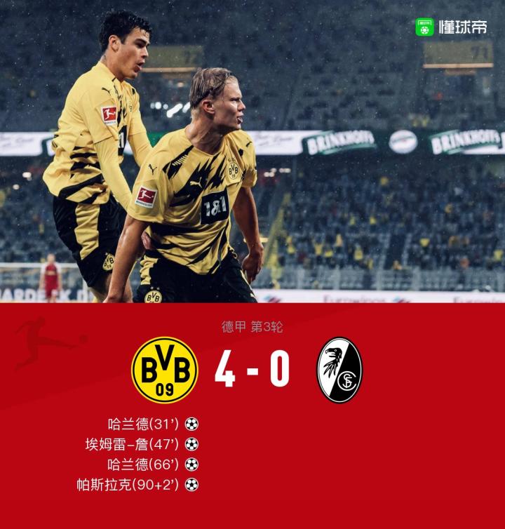 剑南春丨德甲战报:多特4-0弗赖堡,哈兰德双响,雷纳三助攻