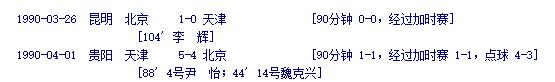 在当届赛事中,北京队在自己的主场1:0小胜天津,占得两回合先机。在双方的次回合决战中,坐镇主场的天津队在88分钟内和北京队战成1:1平。