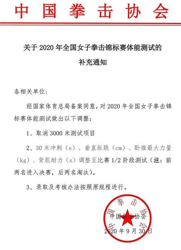 就拿近期沸沸扬扬的体测风波为例,经历巨大的舆论压力后,中国拳击协会在9月30日下午发布官方通告,正式宣布对接下来进行的2020年全国女子拳击锦标赛作出体测调整,取消饱受诟病的3千米项目,其他几个项目也分别改为1/2比赛阶段进行。