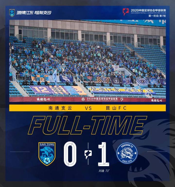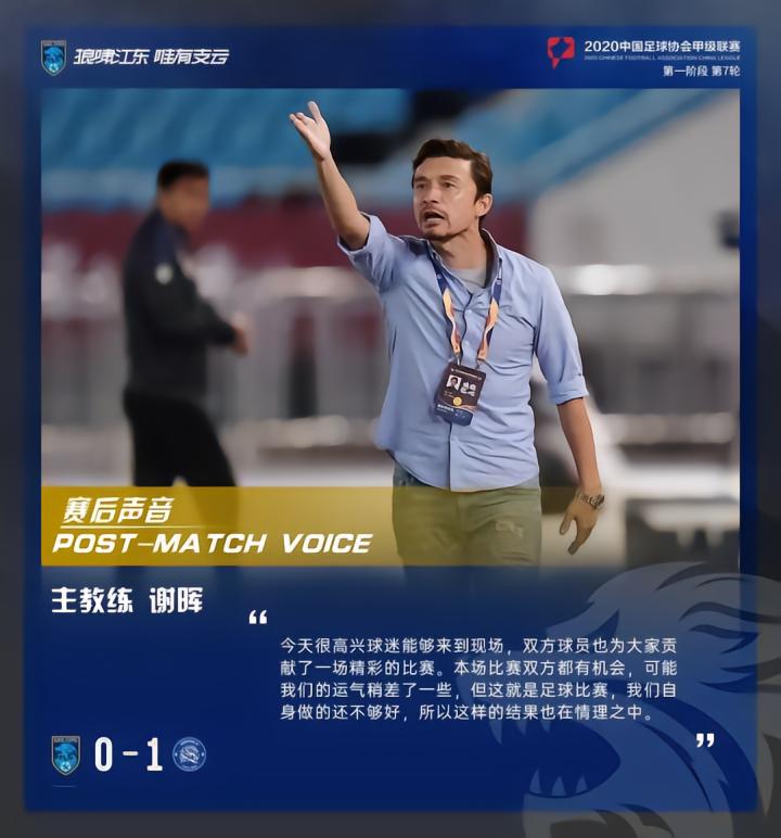 支云0-1惜败昆山,谢晖:感谢球迷,我们做的还不够好