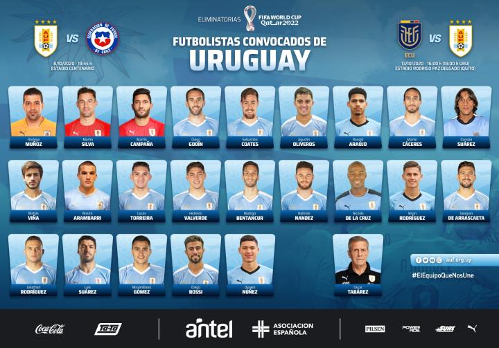 10月2日,乌拉圭足协公布了参加本月世界杯预选赛的最终23人名单。