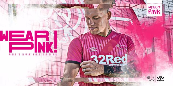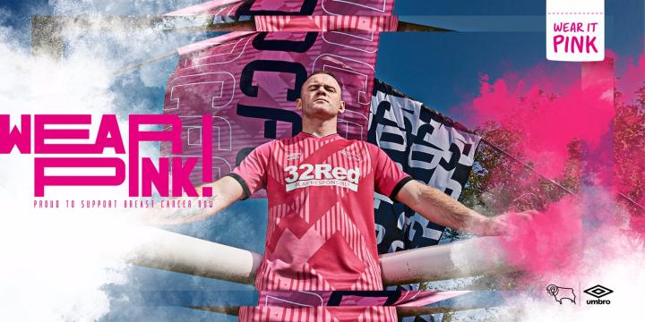在“Wear It Pink!”口号的引领下,英格兰德比郡足球俱乐部与umbro一同推出球队2020/21赛季全新第二客场球衣。拥有粉色外观的新球衣已经在上周末球队客场与诺维奇的联赛中正式亮相。