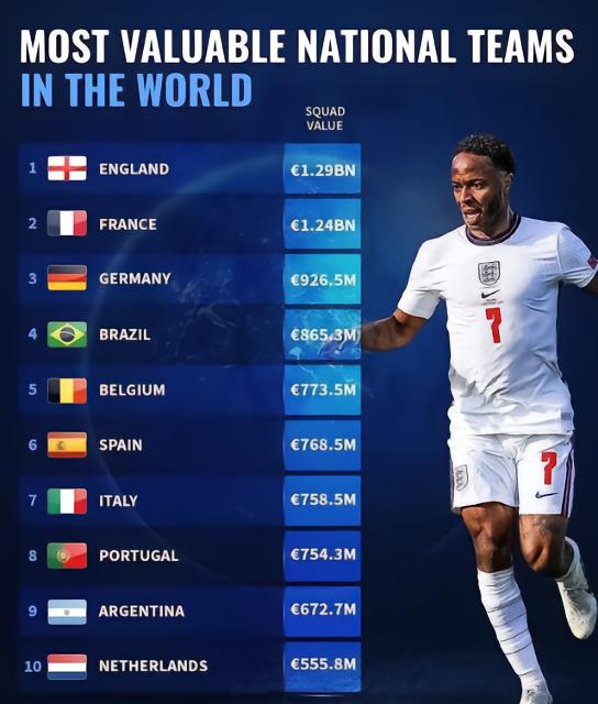 丛骏体育随着这两个星期的国家队比赛周,欧国联和世界杯南美预选赛的陆续展开,《转会市场》统计了各国国家队球员总身价排行榜,英格兰以12.9亿欧元位居第一。