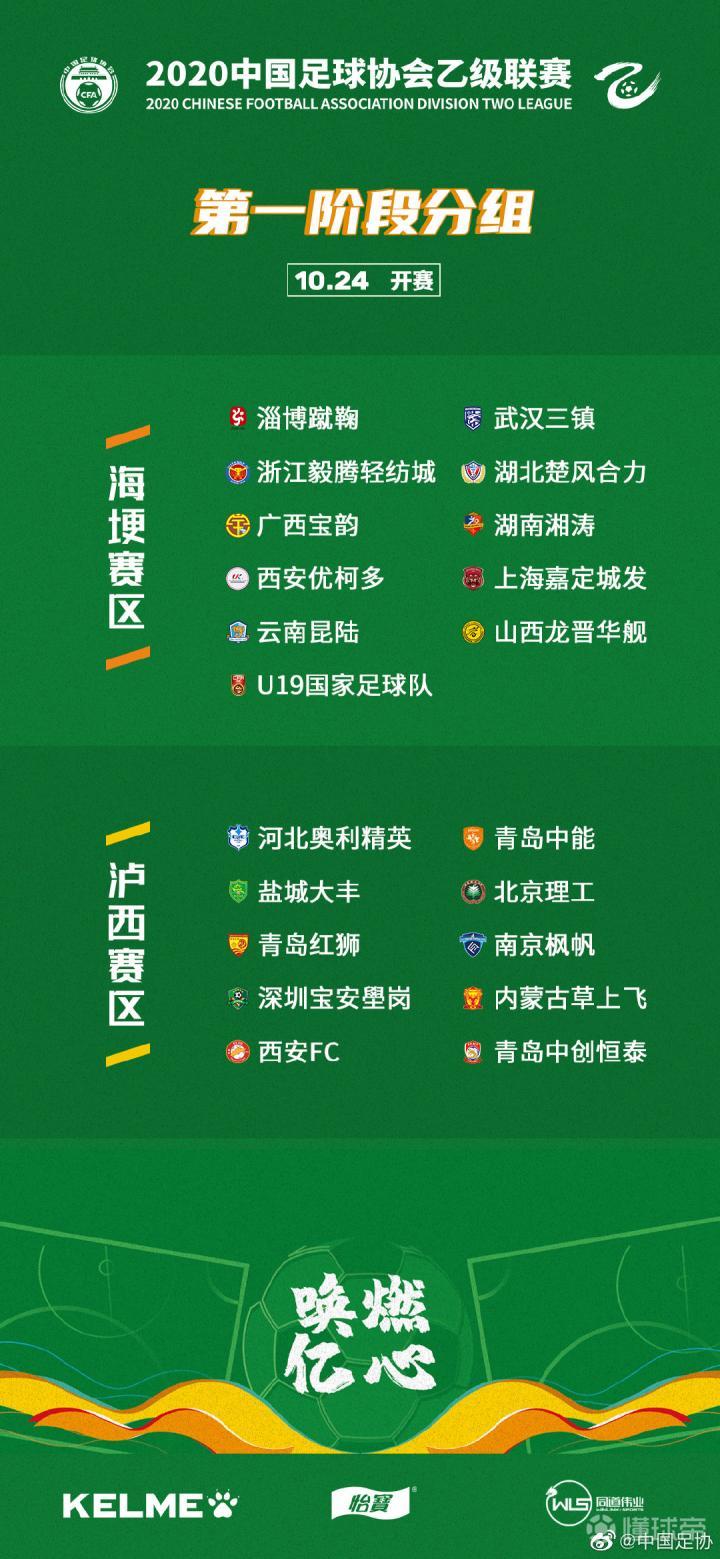 2020中国足球协会乙级联赛将于10月24日开赛...