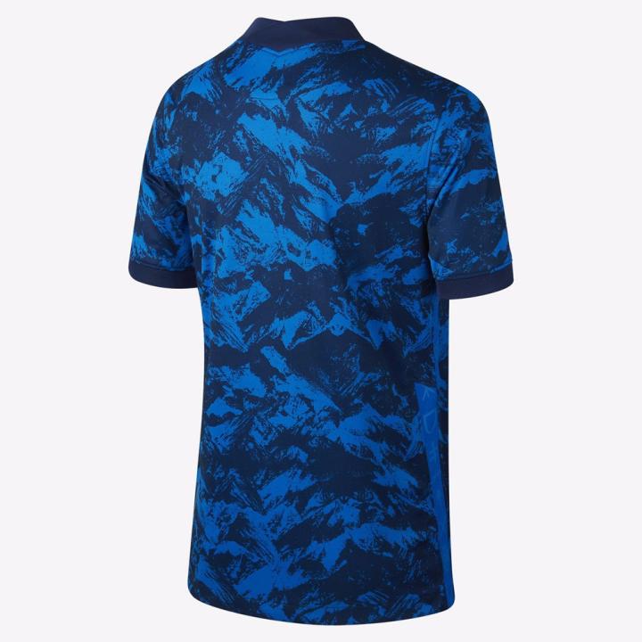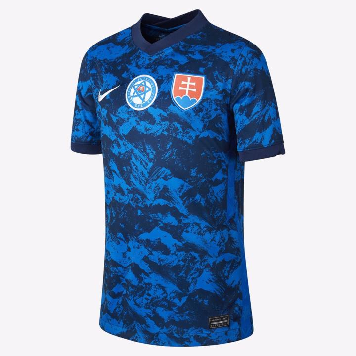 继承传统的蓝色主场球衣上加入带有手绘风格的黑色暗纹,其灵感源自于该国最著名的塔特拉山,球衣胸口正中放置斯洛伐克足协徽章,而左胸上则是斯洛伐克国徽。球衣两色的透气条带上加入源自著名文化历史遗迹奇奇马尼村(Čičmany)建筑上所用到的装饰图案与国徽上的组成元素如:双十字、盾牌、塔特拉山与生命之星,展现出其国家特色与民族自豪感。