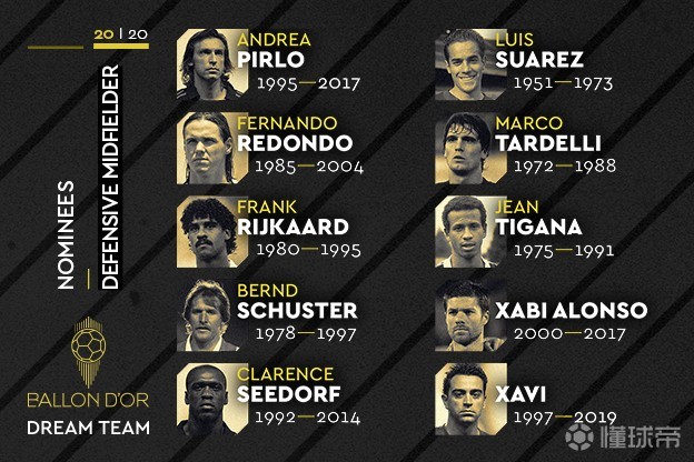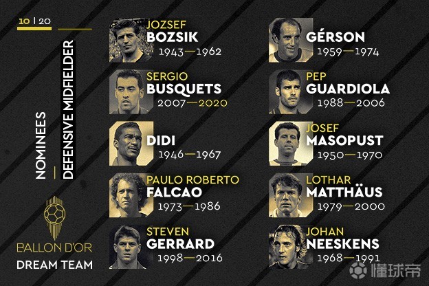 《法国足球》金球奖“最佳11人”公布了防守型中场20人候选名单,哈维、杰拉德、皮尔洛、瓜迪奥拉、里杰卡尔德等人在列,布斯克茨是唯一现役入选球员。