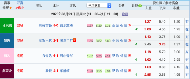 3、两场比赛尽量从不同的联赛中选择。同一个比赛情况下,2只实力队伍同时进行的赛事,偶有发生一方出现爆冷等特殊情况。