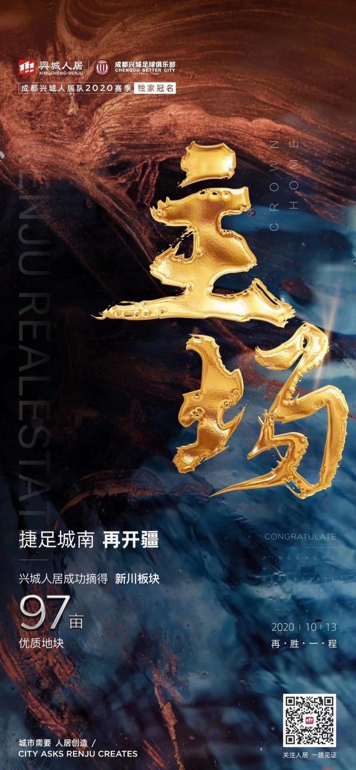 目前2020赛季中甲联赛九轮战罢,成都兴城人居足球队以7胜1平1负,积分22分的战绩稳居成都赛区榜首位置,提前拿到了冲超组入场券。球队在赛场上贡献了精彩的较量,一路高歌前行。与此同时,赛场之外也传来喜讯,成都兴城人居地产集团在成都主场竞拍成功,成功摘得新川板块!