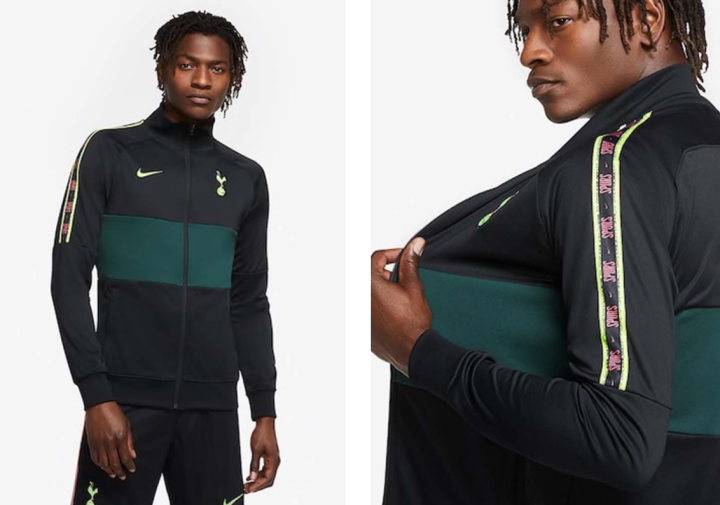 托特纳姆热刺-源自客场球衣的深绿色,两侧肩膀处有着SPURS字母串标设计。