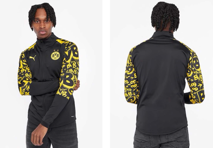 多特蒙德-这件多特蒙德外套在肩膀以及袖子上延续了客场球衣的涂鸦图案,色彩也是俱乐部经典的黄黑色。