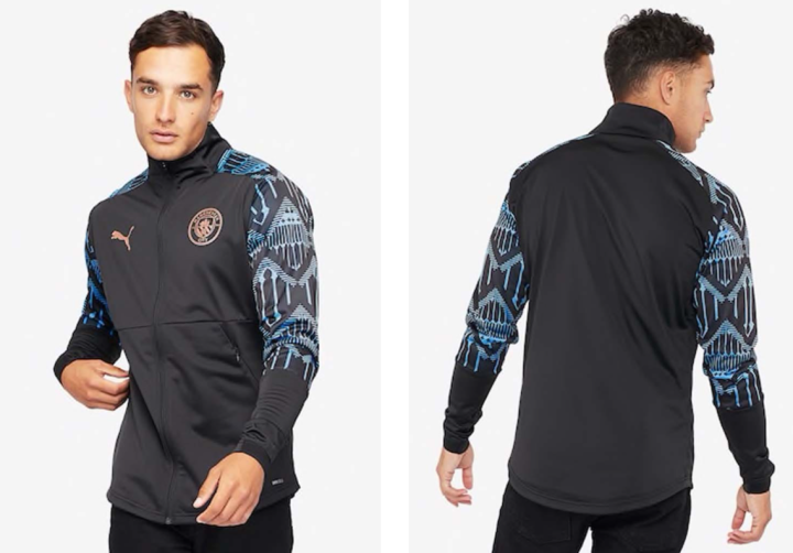 曼城-又是一件曼城的运动外套,不得不说今年曼城球衣的设计的确别出心裁,袖子上色彩采用了俱乐部传统的天蓝色,而图案则是与客场球衣所呈现的一样,灵感来源于卡斯尔菲尔德和布里奇沃特运河,胸前点缀古铜色的细节。