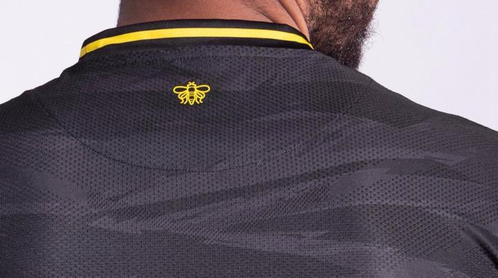 胸前的俱乐部徽章采用质感与细节俱佳的3D热压工艺打造,衣领内加入俱乐部的核心价值观,作为俱乐部象征以及绰号的“黄蜂”徽章被放置在球衣背后衣领下方。