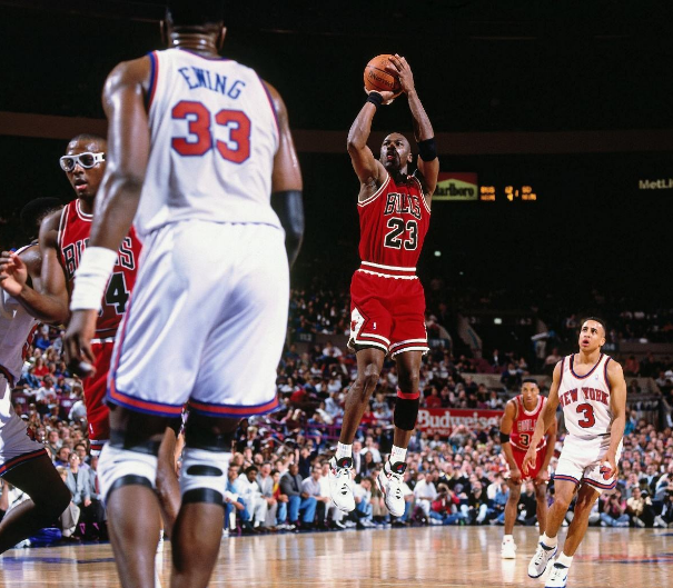 乔丹的身材在后卫里,那就是最完美存在。肩宽出色,臂展又长,身形又十分修长,看外形就知道不是等闲之辈。乔丹的投篮一直是拿手好戏,特别是后三连冠开始,他的进攻主要手段就是投篮。乔丹出手点高,滞空时间又长,想封盖他很难。