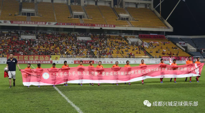 成都兴城足球俱乐部承担起社会责任,搭建连接城市与雪域高原的桥梁,为孩子们的足球梦想铺路。今年,成都兴城足球俱乐部向马尼干戈寄宿制学校捐赠了一批训练器材,再一次邀请学校足球队的藏族小队员们来到比赛现场观赛。
