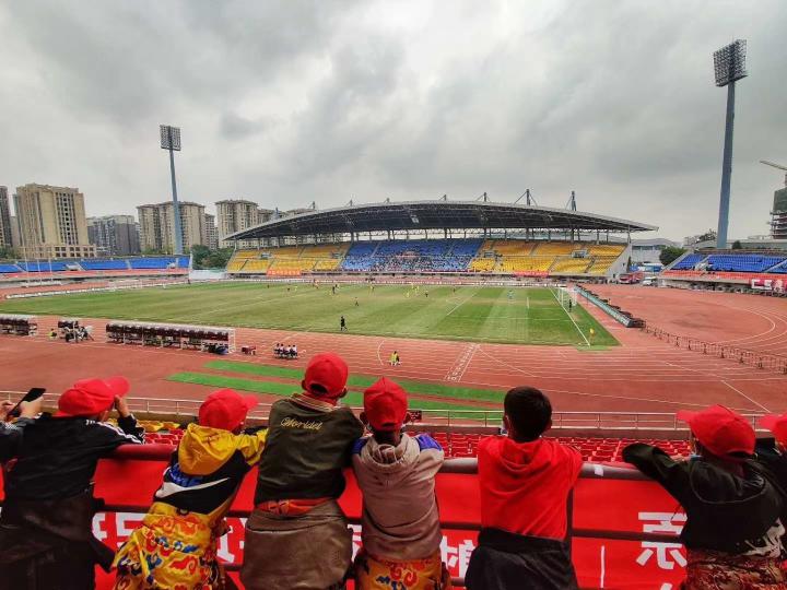 小朋友们来到成都兴城人居的比赛现场观赛,是成都兴城足球俱乐部携手成都高新区教育文化和卫生健康局、成都高新区(简阳市)对口支援工作队、德格县委组织部及德格县教育和体育局联合举行的“穿越雪域高原 感受公园城市”足球公益成都行活动中的一部分。