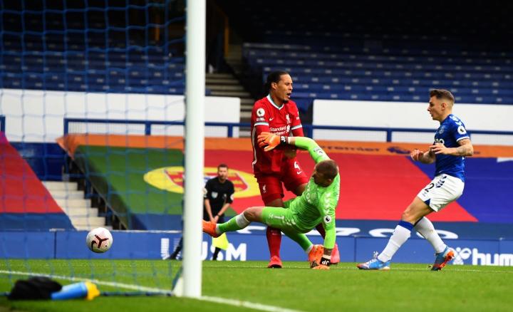 在比赛开场后仅6分钟,范戴克包抄时被皮克福德剪刀脚铲倒,VAR显示范戴克越位在先,主裁并未判罚点球,五分钟后范戴克因受伤无法坚持比赛而离场。