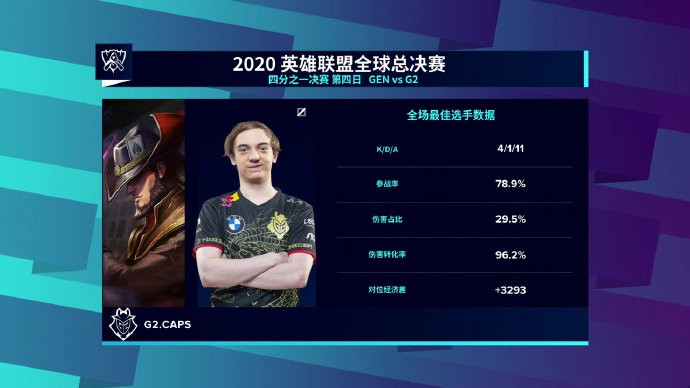 电竞赛事战报北京时间10月18日18:00,2020英雄联盟全球总决赛八强淘汰赛GEN vs G2,G2 3-0横扫GEN,拿到最后一个四强名额。