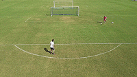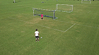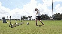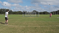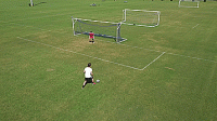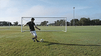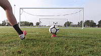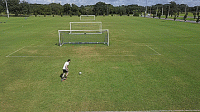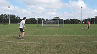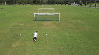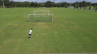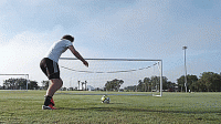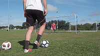 一旦我们掌握了基本的技巧,我们就可以开始练习准确性,并在运动中击球。把球放在离球门12码的地方,或者大概在罚球点的位置,然后在离每个门柱2码的地方放一个标志盘。