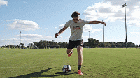 要打上力量,我们首先要掌握基本的大力射门技巧,这需要我们转动我们的脚踝,用我们的脚背击球。