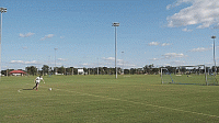 看看10次中有多少次我们可以准确地命中球门角,随着技术提高,我们可以逐渐开始把球往后挪。