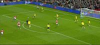 然后大力低射近角入网。守门员则全力扑救。
