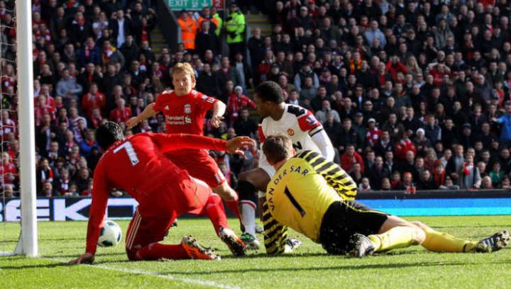 在这场激动人心的比赛前,作为卫冕冠军的曼联在联赛中排名榜首,然而却在老特拉福德球场被来势汹汹的利物浦撕扯得支离破碎。比赛中,C罗的点球破门帮助曼联取得领先。过后不久,维迪奇在托雷斯的紧逼之下出现失误,西班牙金童把握住机会将比分扳平。随后,维迪奇再次犯错,禁区内的致命犯规不但送给对手一粒点球,也导致了自己被红牌罚下。红军队长杰拉德点球命中,利物浦将比分超出。