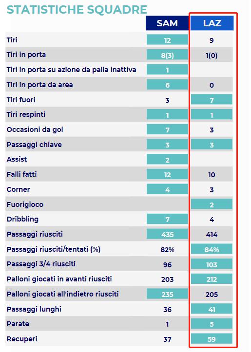使用了不擅长的战术后,最终的数据也就没有那么顺眼。全场比赛只有一次射正的数据不是拉齐奥的正常水平,当然这也和主力前锋缺席有很大关系。待主力前锋回归后,拉齐奥在进攻中会恢复到正常水平。