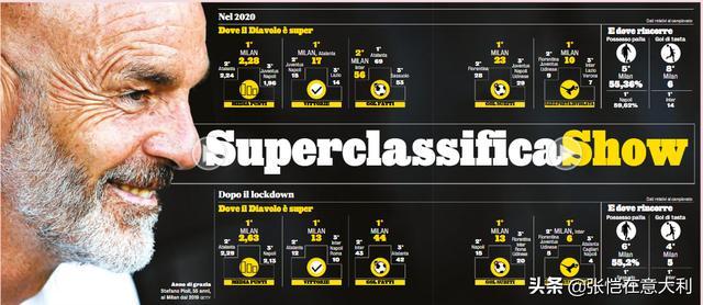 意媒罗列2020年度、复赛后两个时期米兰的强势。超级榜首秀。