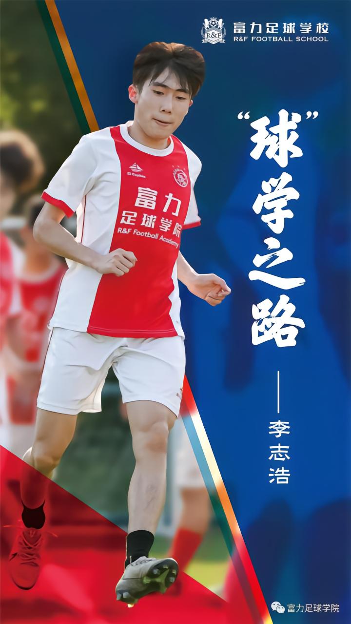 由于初一才进入富力接受专业足球训练,李志浩起步较晚,相比其他队员基础功较差,但他凭借较强的领悟能力 ,加之勤奋和努力,很快成为了球队中不可或缺的中坚力量。在球场上善于思考的他攻守非常平衡,经常用速度完成突破,帮助球队获得破门的机会,是队里的边路快马。