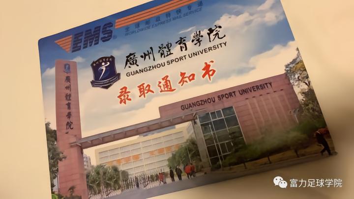广州体育学院是华南地区唯一的体育本科高等学府,也是建国以来国内较早专门从事体育教育的院校之一,是许多广东体育生的梦想学府。这份广州体育学院的录取通知书是我校U19球员李志浩收到的,他在今年的高考单招考试中被广州体育学院足球训练专业录取,如愿成为了一名广体人。
