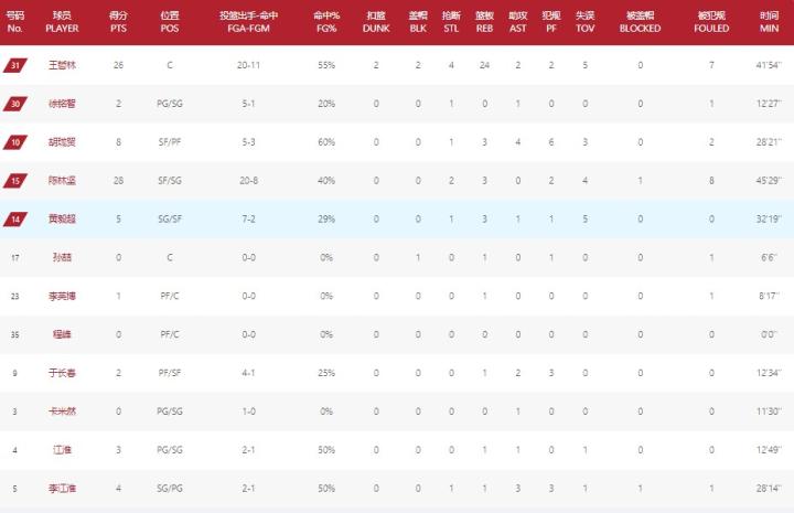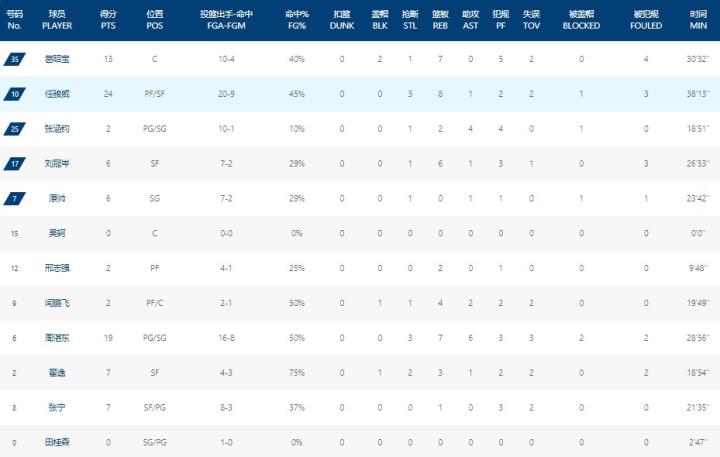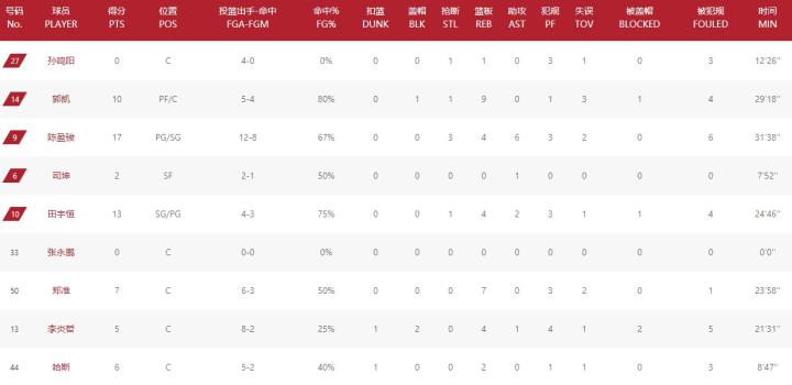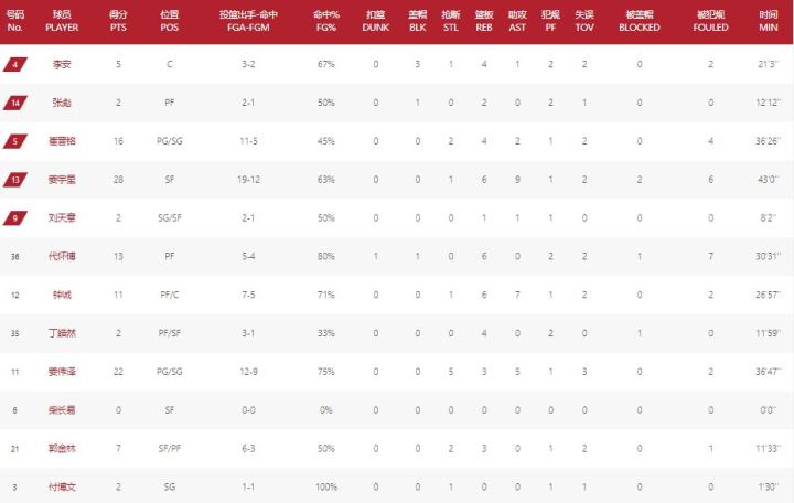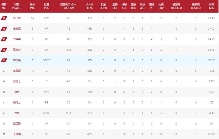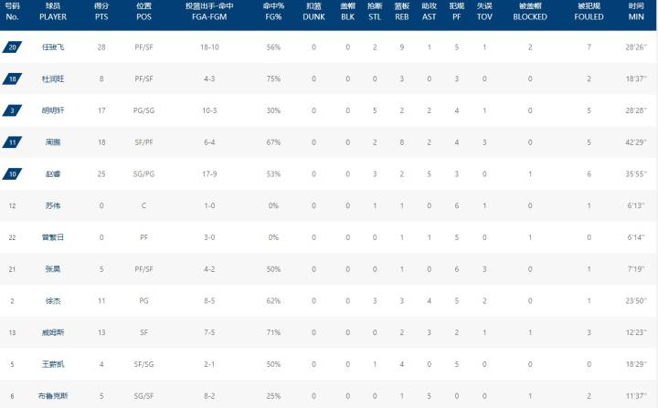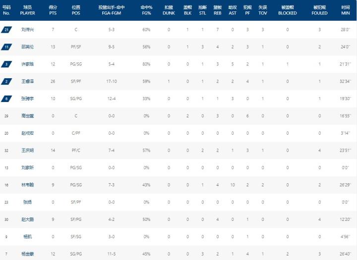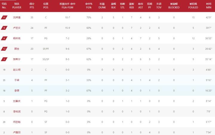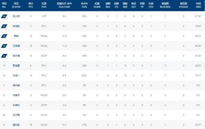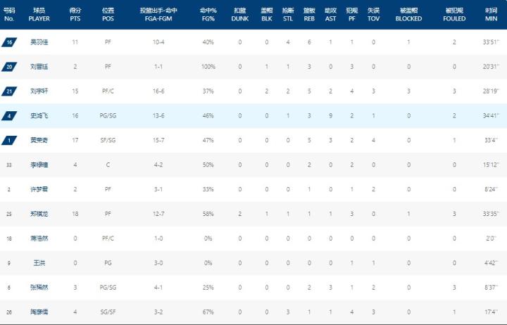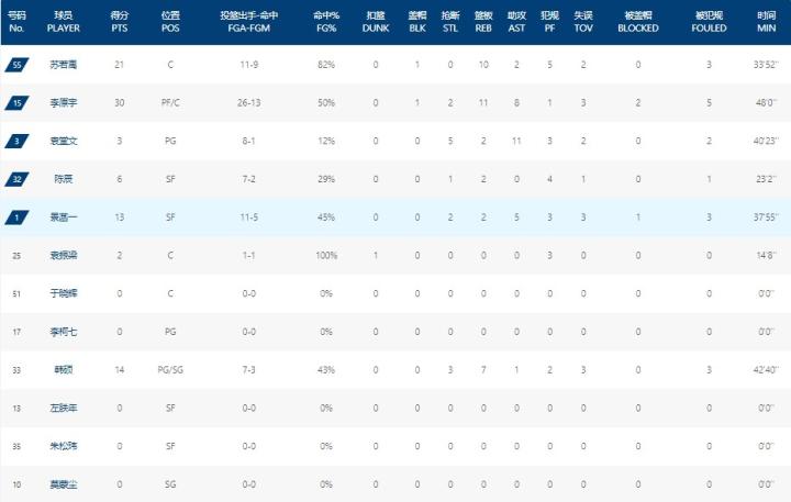 此役,上半场姜宇星和姜伟泽合力砍下31分帮助吉林取得12分领先进入中场休息。第四节初,姜宇星和代怀博带领吉林确立起19分领先奠定胜局。此役吉林前锋姜宇星砍下28分6篮板9助攻。
