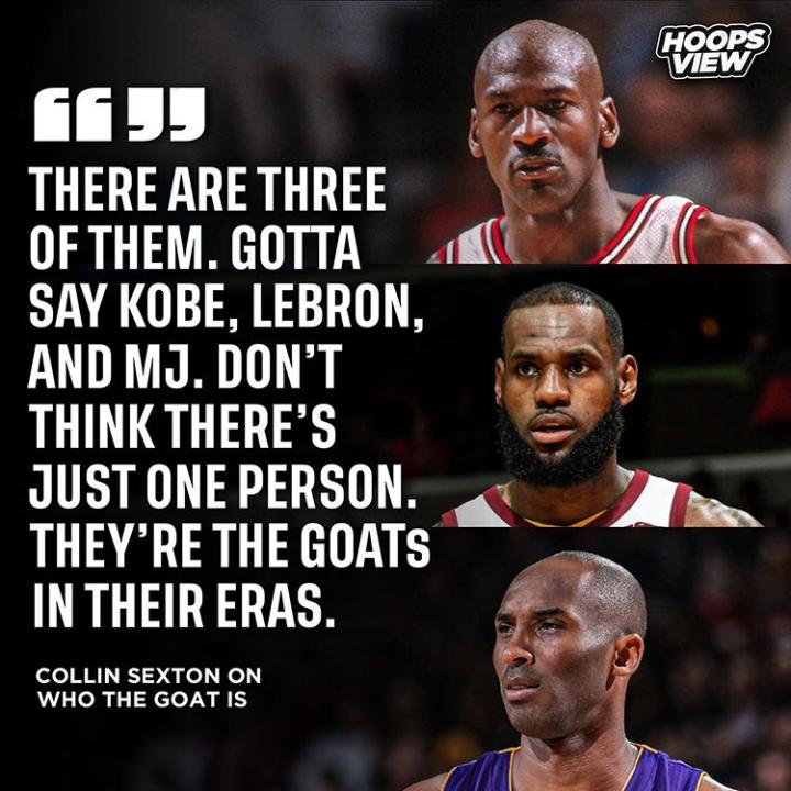 “有三个人,我想说的是科比、勒布朗和MJ(乔丹),”当被问及谁是GOAT(史上最佳球员)时,塞克斯顿说道,“我不认为这只属于一个人。他们分别是各自时代的GOAT。”