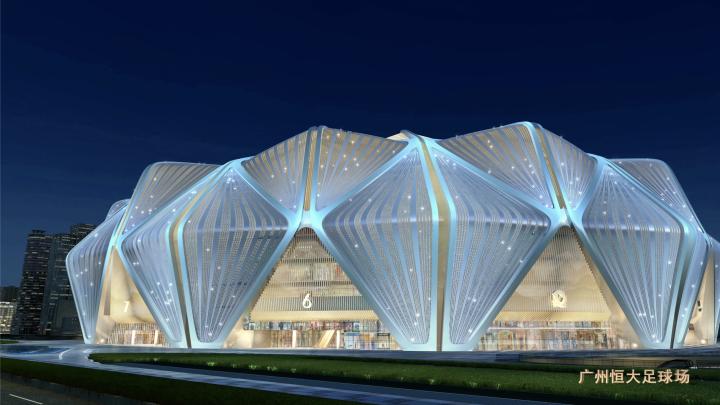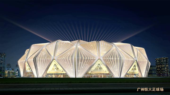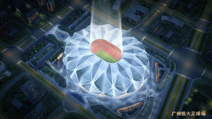 广州新地标即将诞生,恒大新球场灯光效果片为中国足球添底气
