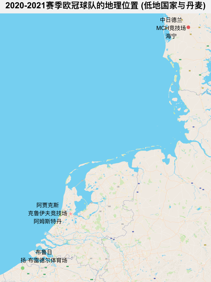 与比利时、荷兰不同,丹麦不是“低地国家”,而是一个北欧国家。在首都哥本哈根所在的西兰岛和其他岛屿之外,丹麦王国在欧洲大陆上还有一部分领地——日德兰半岛(不含半岛南部的德国领土北石勒苏益格),本届欧冠丹麦唯一的参赛球队中日德兰足球俱乐部就在半岛中部中日德兰大区的海宁自治市(好像浙江省也有同名城市,以皮革城闻名)。中日德兰经常参加欧联杯的比赛,今年他们则是通过层层资格赛,最终得以参加本赛季的欧冠正赛。