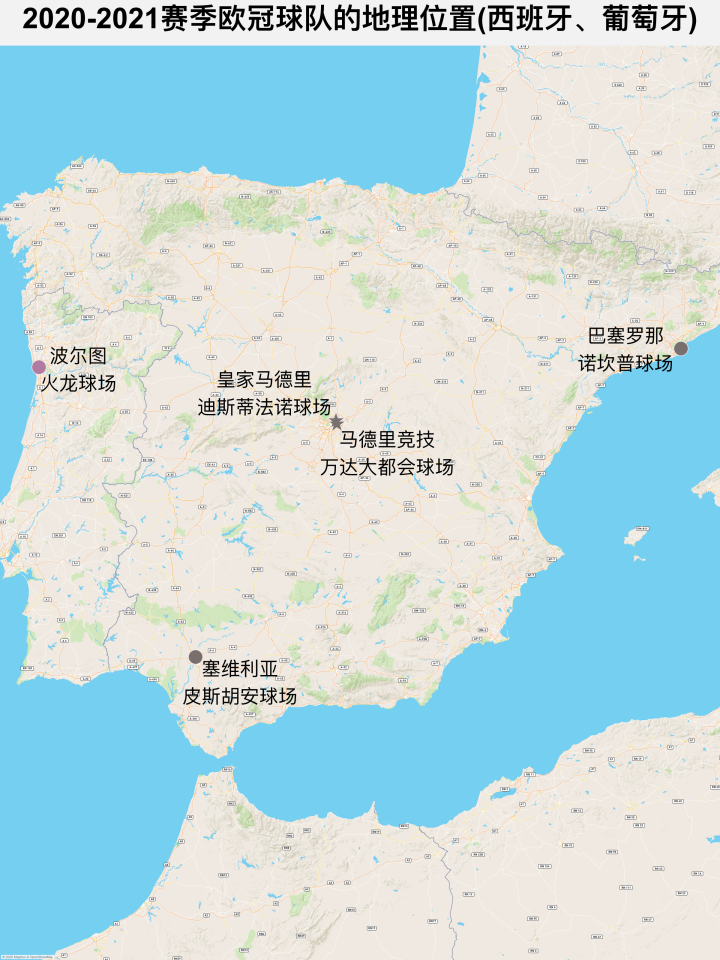 葡萄牙的邻国西班牙是目前欧足联国家系数最高的球队,过去10年的欧冠冠军,有一大半都为西甲球队所获。本赛季只有一个国家首都有两支参赛队伍,正是西班牙首都马德里,值得注意的是,由于伯纳乌球场仍在改造,本赛季皇马的主场设在马德里北郊的迪斯蒂法诺球场,而马竞的新球场——万达大都会球场则位于东郊。