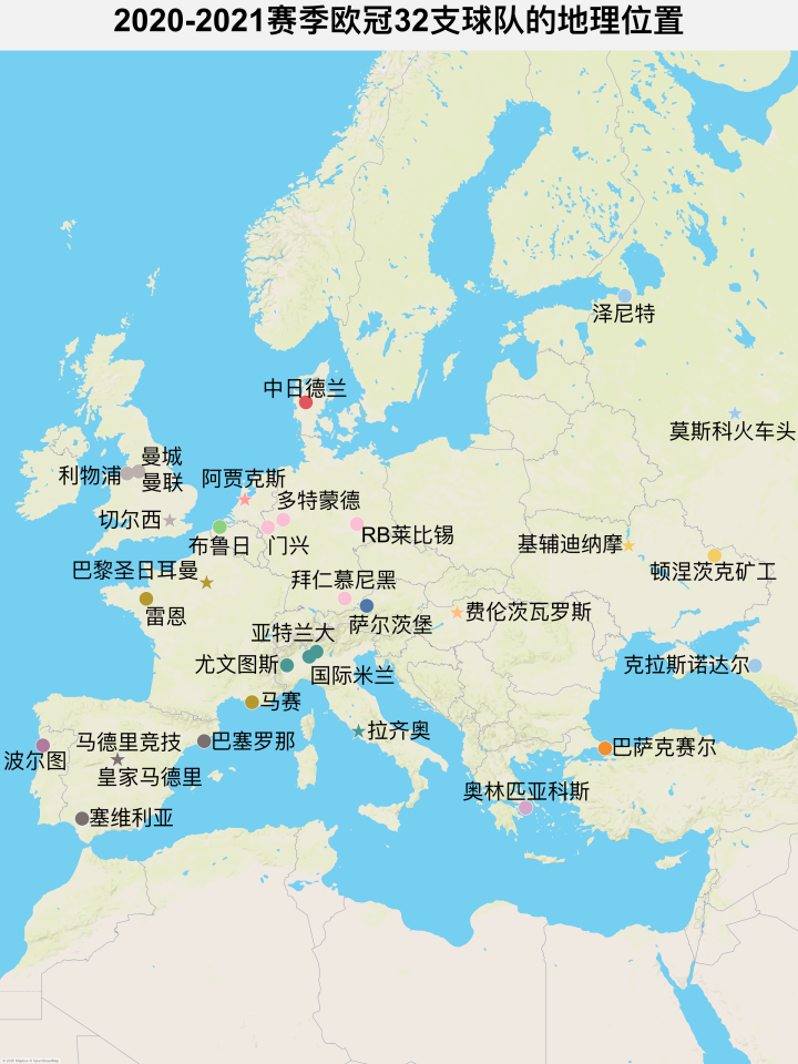 收藏 | 新赛季欧冠32队地理位置完整分析