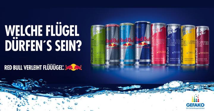 两人的合资公司各自有其针对市场互不冲突,马特舒茨的完美包装,市场营销以及他对欧美市场的敏锐嗅觉,使他很快打造出了一款高端饮料产品并占领了欧美及所有发达国家的市场,在欧洲美洲大洋洲甚至亚洲的日韩港澳等(上图为红牛法国与日本广告)