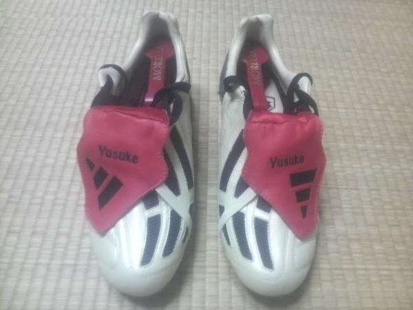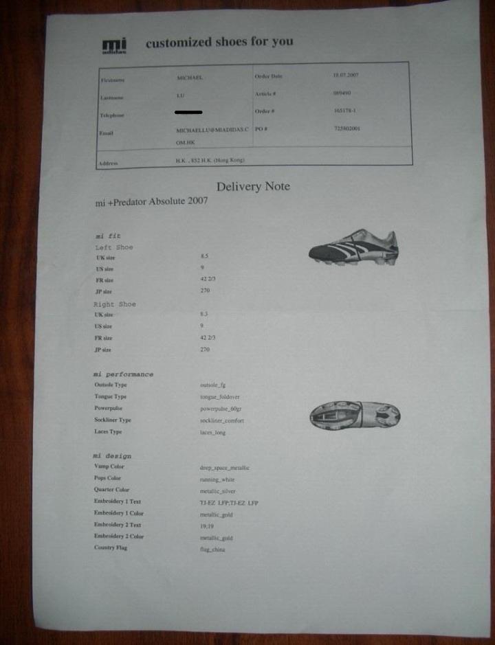 但是当时的鞋子的整体配色还未实现个性化,所以在2002年的猎鹰6代mi服务上,adidas推出了升级服务,猎鹰6代的鞋钉,后跟和tpu可以换颜色,但是尺度也比较有限,鞋面配色只能是adidas量产鞋面,总体来说跨出了外观个性化的第一步。由于韩日世界杯的缘故,当时adidas mi最大的市场是在日本,日本民间mi的球鞋比较常见,你能看见的早期的mi鞋舌上面,id大部分都是日本人的名字。